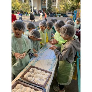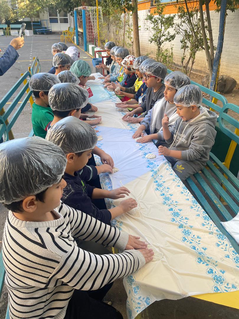 دانشآموزان پایه اول پس از یادگیری حرف «ن»، در کنار معلمان خود جشن نان را برگزار کردند. این برنامه با هدف پیوند آموزش و تجربه عملی طراحی شد؛ کودکان با دستان کوچک و پرشورشان نان درست کردند و لحظاتی شیرین و خاطرهانگیز آفریدند.